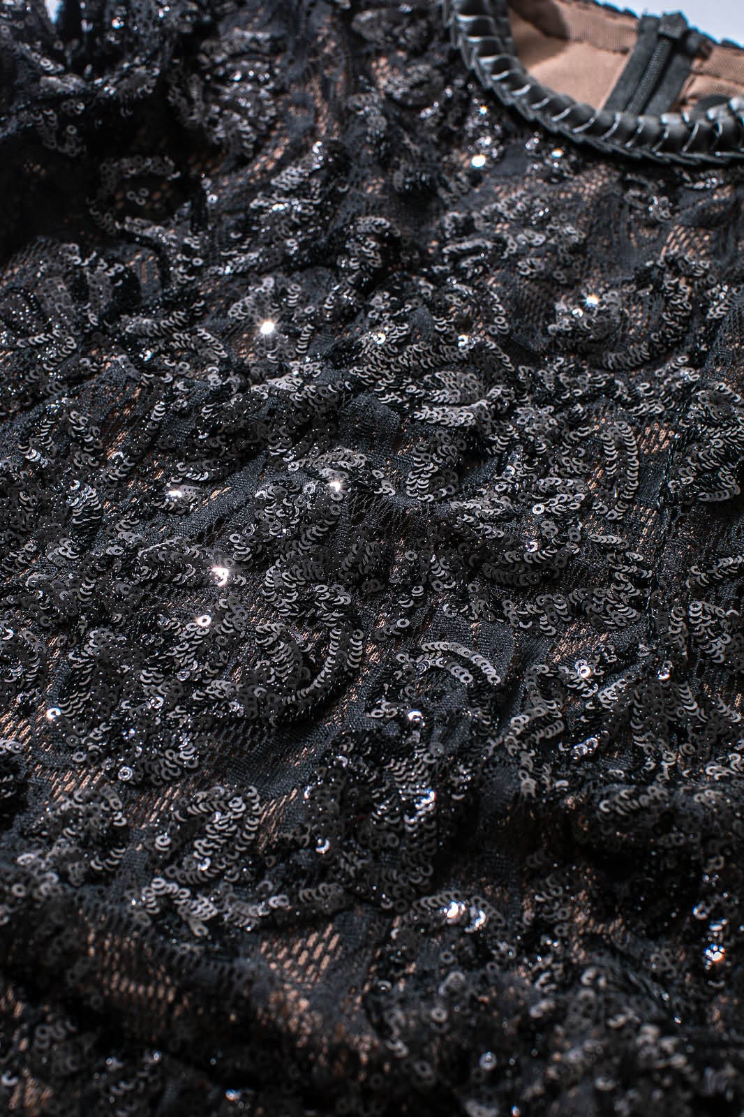 -Sequin embellished lace.