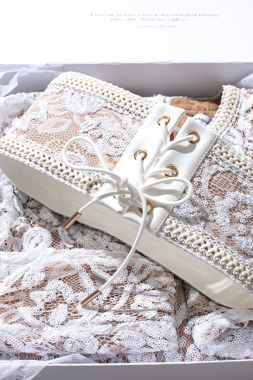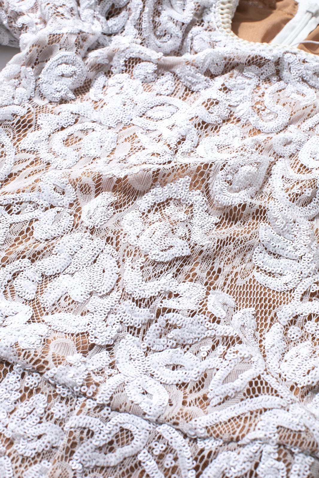 Romance and drama meet with our BELLA jumpsuit in white. The nude lining provides coverage, whilst accentuating the intricate sequin embellished lace detailing.This style was crafted for the modern bride or entire bridal party, ready to rip up the rule book and walk down the aisle in style.