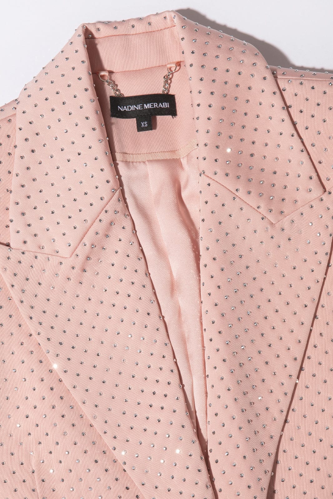 Have all eyes on you in our KIRA Blush Blazer. Covered in shimmering crystal embellishment and created from our exclusively designed crepe fabric. Featuring full-length sleeves and fully lined in our satin for a smooth and comfortable fit. Why not pair with our KIRA Blush Shorts to complete the look?